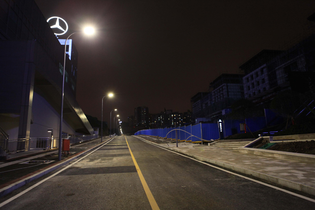 重慶市南岸區(qū)鵝風支路使用重慶“中國創(chuàng)造”世界領先物聯(lián)網(wǎng)多色溫防霧霾LED人工智能路燈